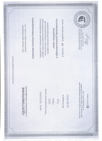 Удостоверение о повышении квалификации ООО "Аттестатика " по дополнительной профессиональной программе "Кейс-технологии в образовательной деятельности" 24 часа (2022) |