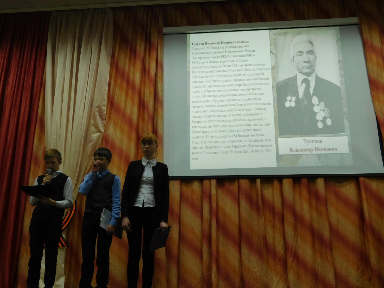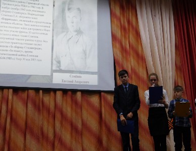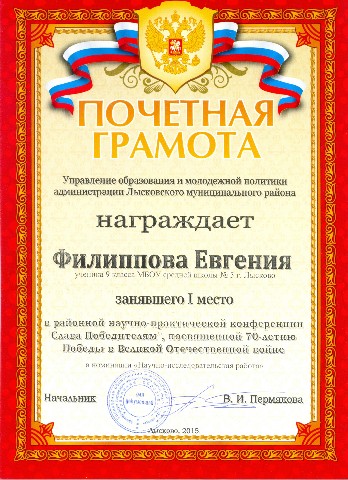 Научно-практическая конференция школьников "Слава победителям", посвященная 70-летию Великой Победы в Великой Отечественной войне 1941-1945 гг., Филиппов Евгений, 9 класс, исследовательская работа и презентация "Фронтовые пути-дороги Е.А. Филиппова", победитель.