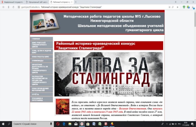 Районный историко-краеведческий Интернет-конкурс "Защитники Сталинграда!" Команда школы "Хранители" заняла 1 место |